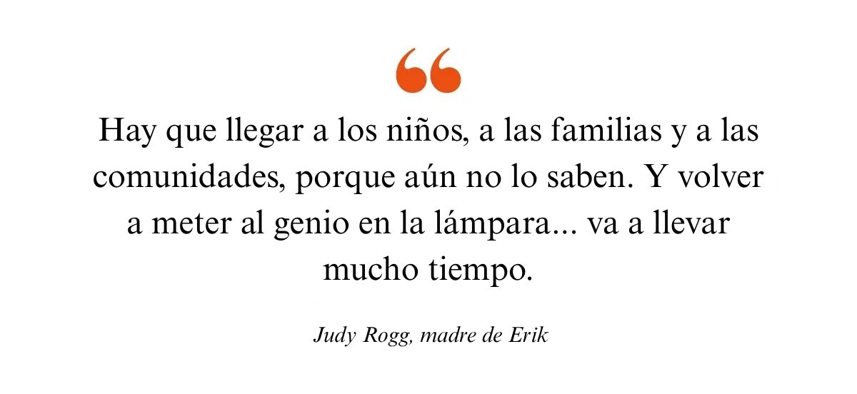 "Hay que llegar a los niños, las familias y las comunidades, porque siguen sin saberlo. Y volver a meter al genio en la lámpara, incluso si llevan a cabo todos estos cambios, va a llevar mucho tiempo".