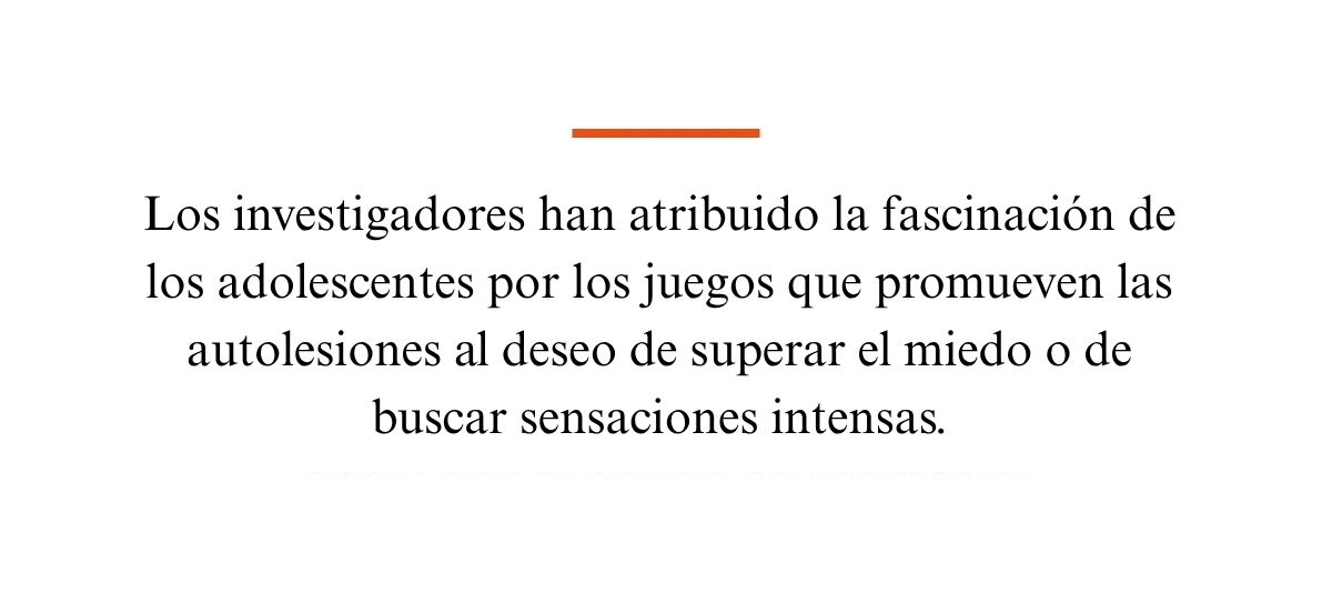 Los investigadores han atribuido la fascinación de los adolescentes por los juegos que promueven las autolesiones al deseo de superar el miedo o buscar sensaciones intensas, incluida la sensación de poder tras sobrevivir a un reto potencialmente mortal, o de escapar de la realidad en momentos de frustración o ansiedad.