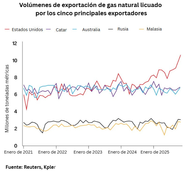 “Pero para los países que no importan gas —y hay muchos, Estados Unidos es uno de ellos— las repercusiones serán menos significativas. Ahí es donde el [GNL] se diferencia del petróleo, porque el precio del petróleo encuentra su equilibrio a nivel mundial.”