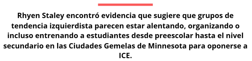 Estudiantes de secundaria se manifiestan durante una huelga en protesta contra el ICE en Austin, Texas, el 6 de febrero de 2026. La ola de protestas contra el ICE comenzó con los adultos y se extendió a los escolares después de que dos enfrentamientos con agentes federales de inmigración se tornaran mortales en Minnesota en enero. (Brandon Bell/Getty Images)Staley encontró pruebas que sugieren que grupos de izquierda parecen estar animando, organizando o incluso entrenando a estudiantes de primaria y secundaria en las Ciudades Gemelas de Minnesota para que se opongan al ICE.