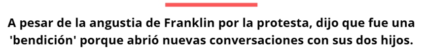 A pesar de la angustia de Franklin por la protesta, dijo que fue una "bendición" porque ha abierto nuevas conversaciones con sus dos hijos: Su hija y su hijo de 16 años.