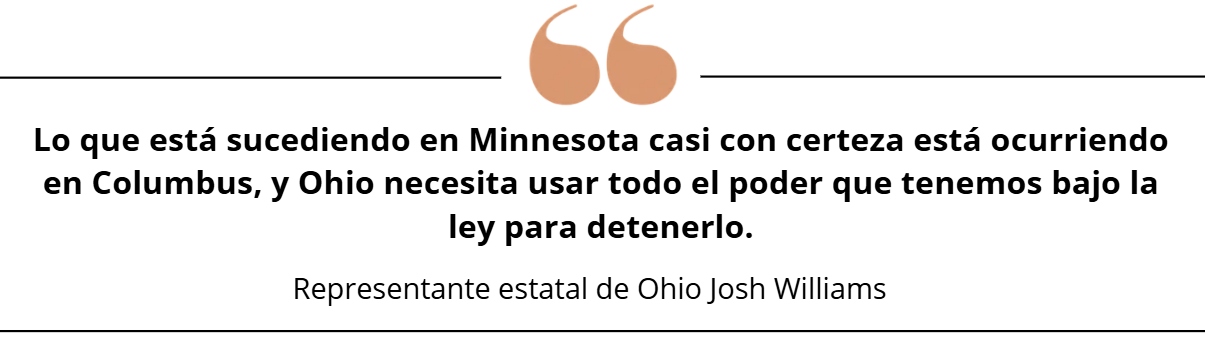 En Ohio, algunos vídeos e informes de ciudadanos parecen ser "creíbles" y suscitan preocupación sobre posibles tramas, según afirmaron los legisladores estatales, lo que les ha llevado a buscar más información y a tomar medidas.En una carta dirigida al Departamento de Niños y Jóvenes de Ohio, el representante estatal Josh Williams afirmó que los informes de los ciudadanos le habían llevado a sospechar que "lo que está ocurriendo en Minnesota está ocurriendo casi con toda seguridad en Columbus".