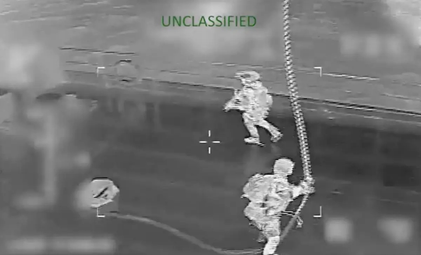 Personal militar estadounidense desciende desde un helicóptero al buque motor/cisterna Verónica durante una operación de abordaje y confiscación en el mar Caribe, el 15 de enero de 2026. (Comando Sur de Estados Unidos/Captura de pantalla)El incidente del barco es una "provocación agresiva", afirma Rusia