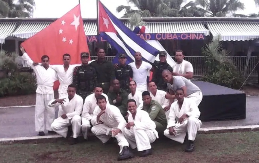 Las fuerzas de seguridad cubanas posan junto a sus instructores chinos en una escuela de formación del Gobierno cubano en 2016. (Cortesía de ADN Cuba)China cautelosa