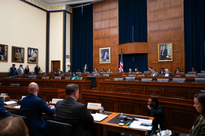 El Comité de Servicios Financieros de la Cámara de Representantes celebra una audiencia para examinar las políticas para contrarrestar a China en Washington el 25 de febrero de 2025. (Madalina Vasiliu/The Epoch Times)El 4 de febrero, Trump mantuvo una llamada telefónica con el líder chino Xi Jinping. Según la Oficina de Asuntos de Taiwán del PCCh, Xi instó a Washington a manejar el tema de las ventas de armas a Taiwán con prudencia.