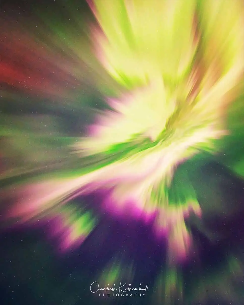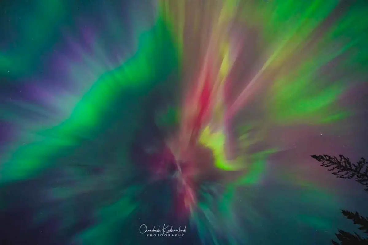 Auroras observadas durante una tormenta solar pasada. (Cortesía de Chandresh Kedhambadi).