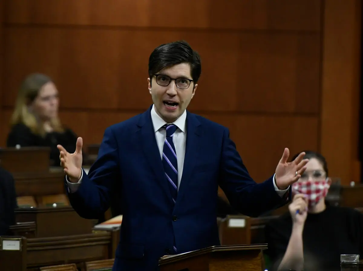 El diputado conservador Garnett Genuis se levanta durante el turno de preguntas en la Cámara de los Comunes, en la Colina del Parlamento de Ottawa, el 16 de abril de 2021. (The Canadian Press/Justin Tang).El diputado conservador Garnett Genuis afirmó que se quedó “conmocionado” al enterarse de que un espectáculo de Shen Yun había sido cancelada debido a una amenaza de bomba.