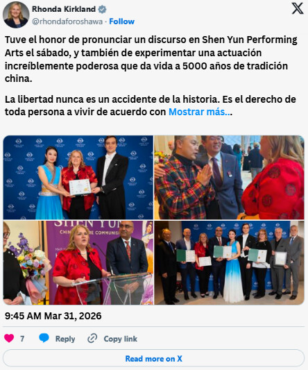 “La libertad nunca es fruto de la casualidad de la historia. Es el derecho de toda persona a vivir de acuerdo con su conciencia, a creer, a rendir culto y a practicar su fe abiertamente y sin temor”, declaró Kirkland en un comunicado publicado en las redes sociales el 31 de marzo, en el que compartió fotos de su intervención en una ceremonia de homenaje a Shen Yun celebrada en el Four Seasons Centre el 28 de marzo.