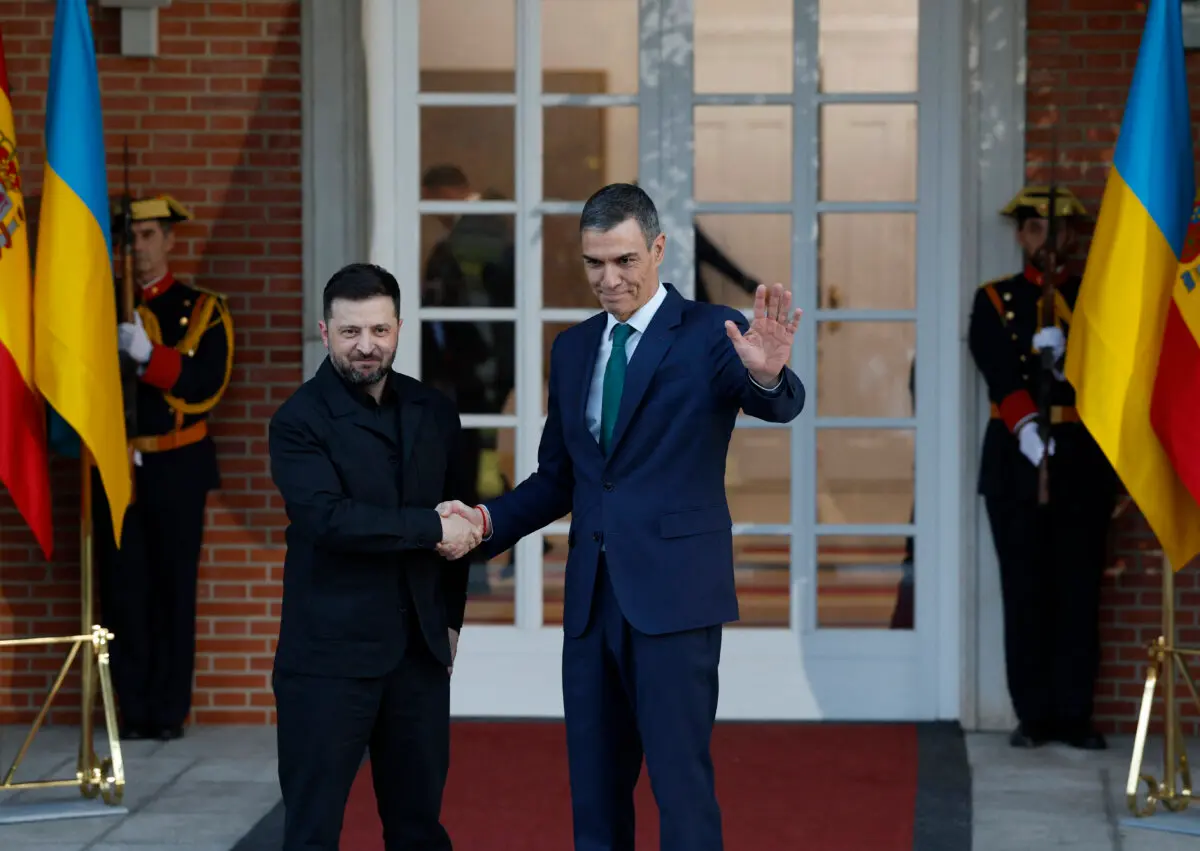 El presidente del gobierno español, Pedro Sánchez, recibe al presidente ucraniano, Volodymyr Zelenskyy (izquierda), en el Palacio de la Moncloa, en Madrid, el 18 de noviembre de 2025. (Pierre-Philippe Marcou/AFP vía Getty Images).Propuesta de la Guerra Fría