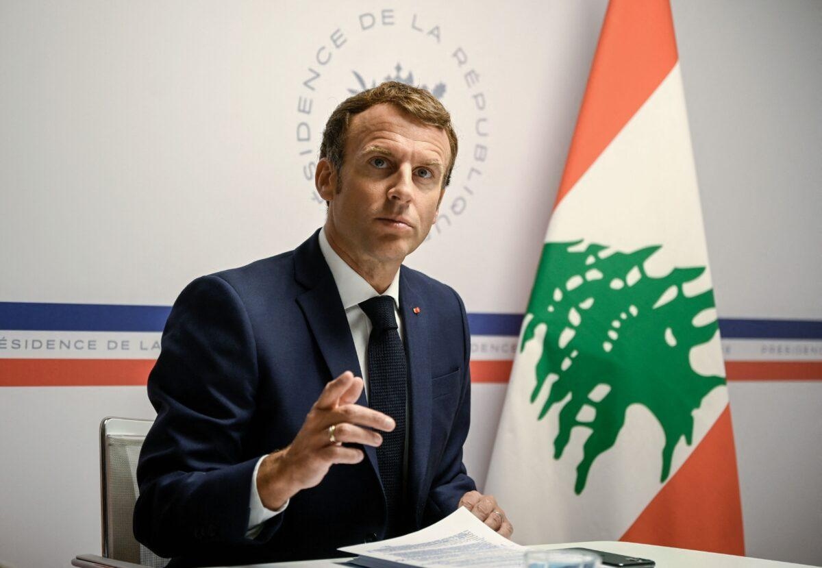 El presidente francés Emmanuel Macron gesticula durante un encuentro en línea en Bormes-Les-Mimosas, Francia, el 4 de agosto de 2021. (Christophe Simon/AFP vía Getty Images)Añadió que Hezbolá "debe deponer las armas" e Israel "debe respetar la soberanía libanesa y detener la guerra".