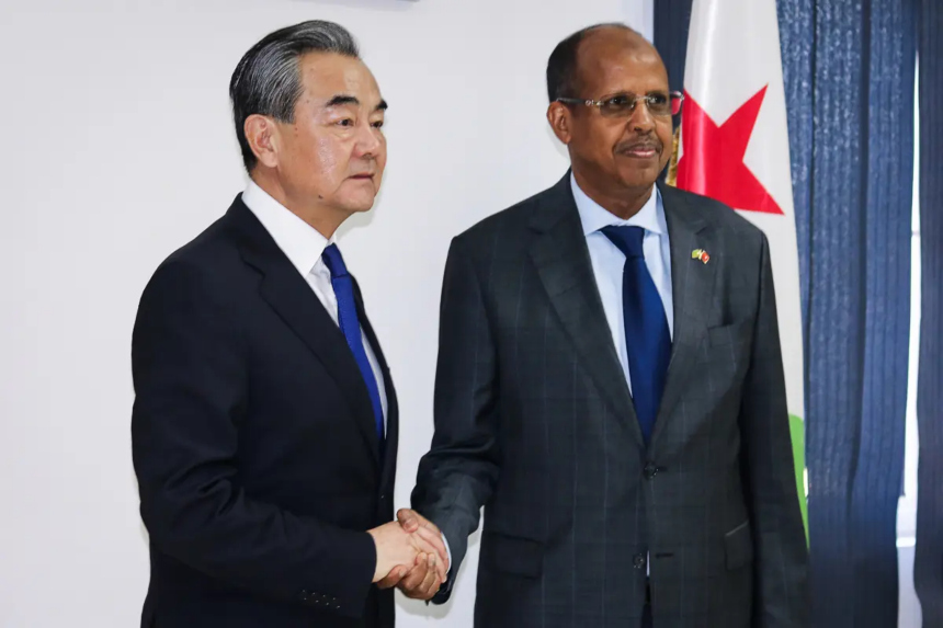El ministro de Asuntos Exteriores chino, Wang Yi, junto al ministro de Asuntos Exteriores y Cooperación Internacional de Yibuti, Mahamoud Ali Youssouf, a su llegada al instituto diplomático de Yibuti, el 9 de enero de 2020. (-/AFP vía Getty Images)China: Es "complicado"