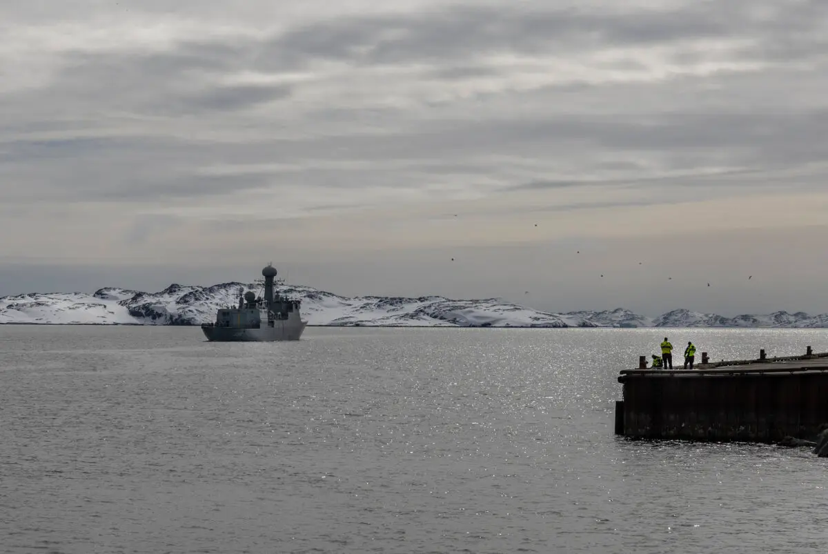 Un buque de la Armada Real Danesa se prepara para atracar en la ciudad de Nuuk, Groenlandia, el 4 de mayo de 2025. (John Fredricks/The Epoch Times)Una tercera ruta, la Ruta de la Seda Polar, se presentó oficialmente en 2018 en el marco de la BRI. Su objetivo es desarrollar las rutas marítimas del Ártico, en particular la Ruta del Mar del Norte, e invertir en infraestructuras a lo largo del corredor.