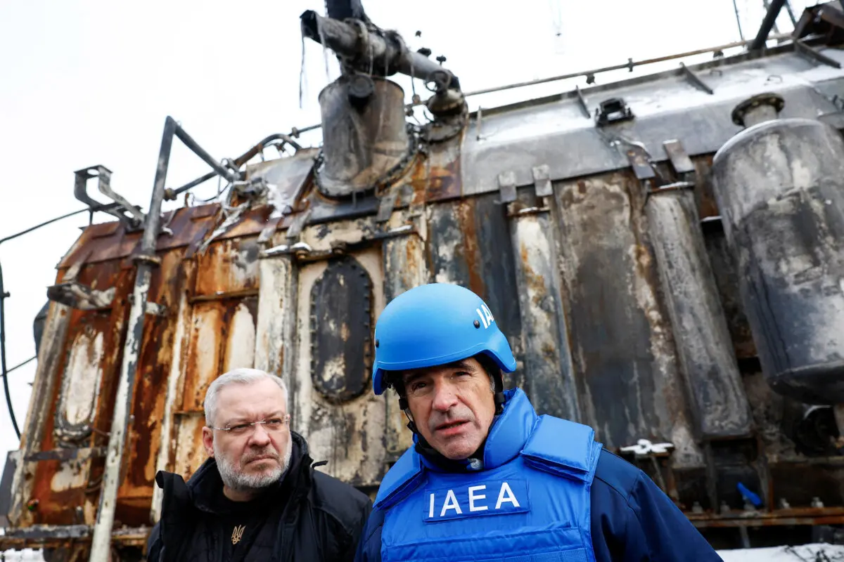El director general de la Agencia Internacional de Energía Atómica (AIEA), Rafael Grossi (derecha), y el ministro de Energía de Ucrania, German Galushchenko (izquierda), visitan una instalación de infraestructura energética en un lugar no revelado de Ucrania el 4 de febrero de 2025. (Valentyn Ogirenko/Reuters)Se espera que otros candidatos se unan a Grossi en los próximos tres meses.