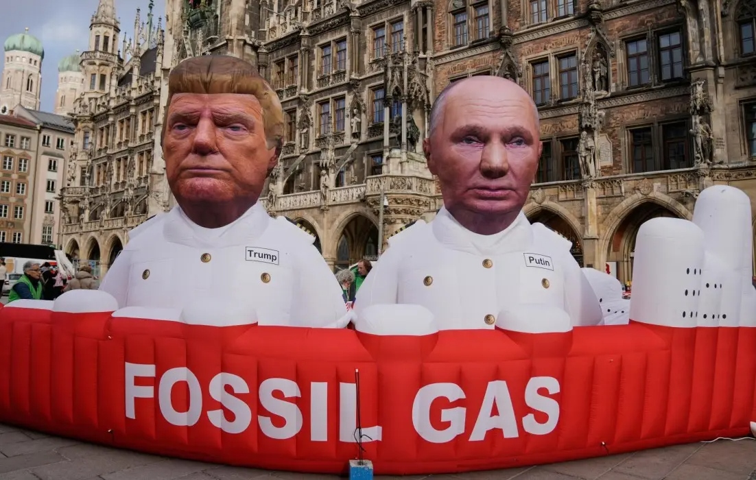 Activistas de Greenpeace exhiben figuras que representan al presidente Donald Trump y al presidente ruso Vladimir Putin en la plaza Marienplatz de Múnich, Alemania, el 13 de febrero de 2026. (Ebrahim Noroozi/AP)El jueves, el subsecretario de Guerra de Estados Unidos, Eldridge Colby, pronunció un discurso en la reunión de ministros de Defensa de la OTAN en Bruselas, en el que dijo: "El mundo que moldeó los hábitos, las suposiciones y la postura militar de la OTAN durante el llamado 'momento unipolar' tras la Guerra Fría ya no existe".