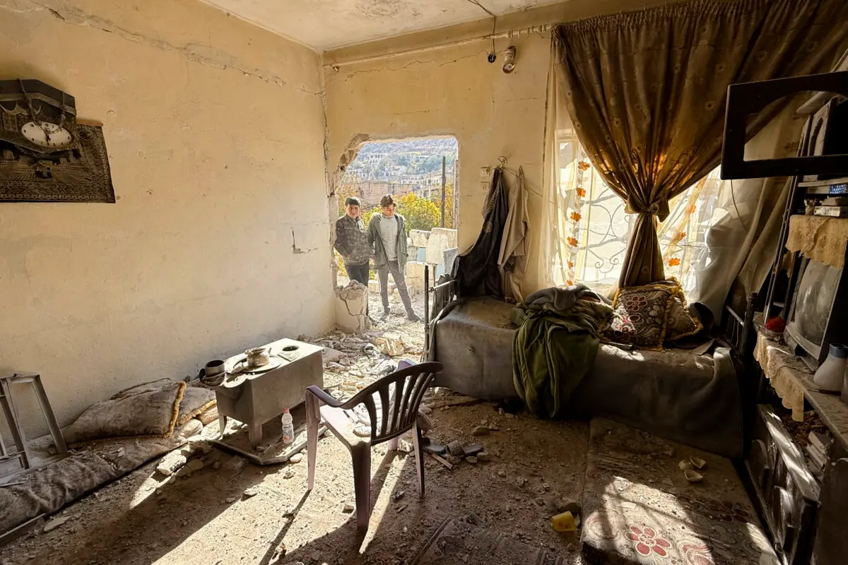 Dos jóvenes inspeccionan el lugar donde se realizó una operación militar israelí en la aldea siria de Beit Jinn, al sur del país, el 28 de noviembre de 2025. (AFP vía Getty Images)Las tensiones volvieron a aumentar el 28 de noviembre, cuando seis soldados israelíes resultaron heridos durante una operación cerca de la aldea siria de Beit Jinn, a unos seis kilómetros al este de la zona de amortiguación que separa Israel de Siria a lo largo de los Altos del Golán.