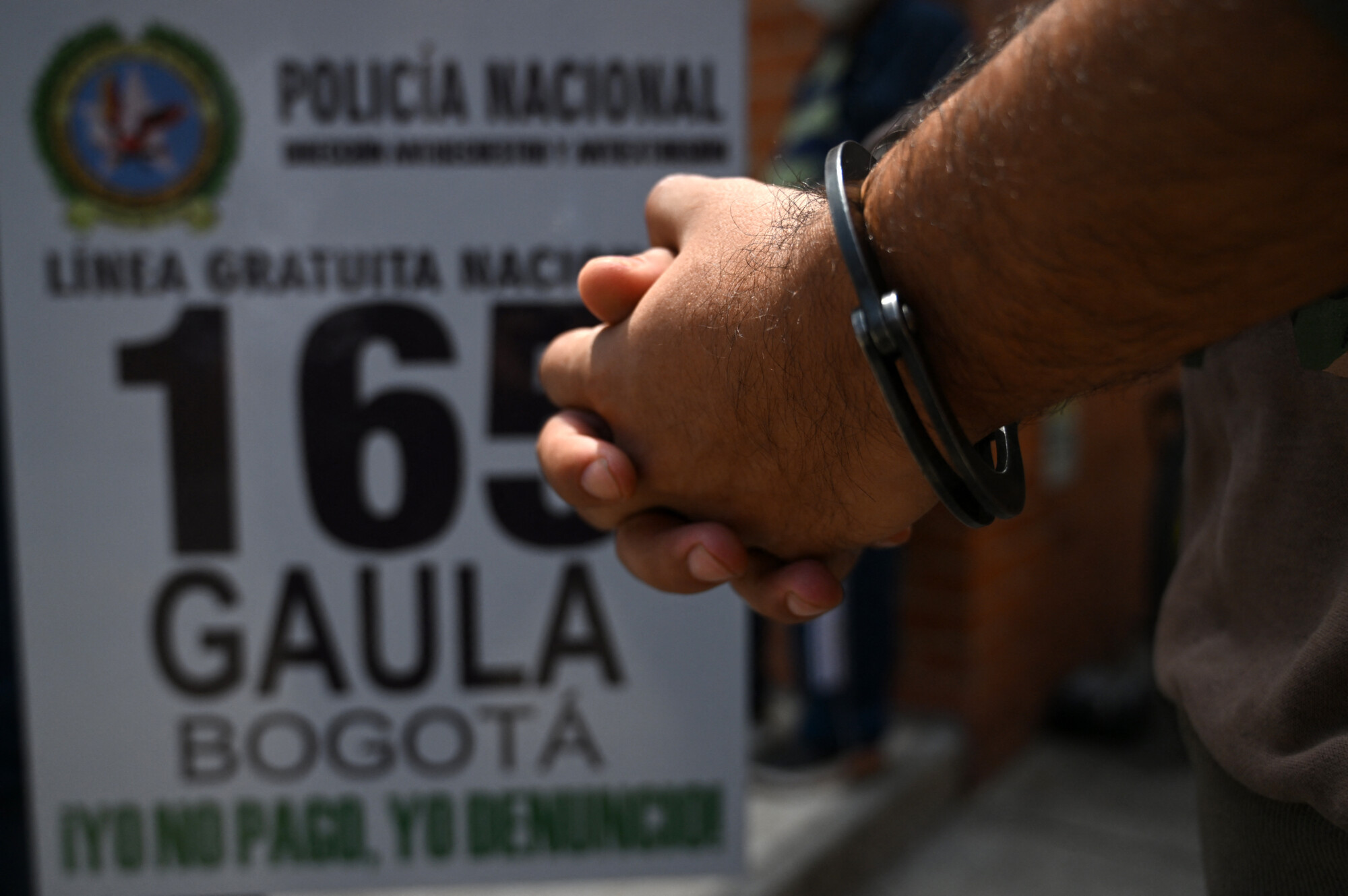 Una foto de archivo de un presunto extorsionador en la comisaría de Gaula (Grupos de Acción Unificada para la Libertad Personal), tras ser detenido en Bogotá el 20 de febrero de 2024. (RAÚL ARBOLEDA/AFP vía Getty Images)El 20 de enero de 2025, el presidente de Estados Unidos, Donald Trump designó a través de una orden ejecutiva al "Ten de Aragua", junto a otras bandas criminales, como una organización criminal extranjera al considerarla una amenaza para la seguridad de los Estados Unidos.