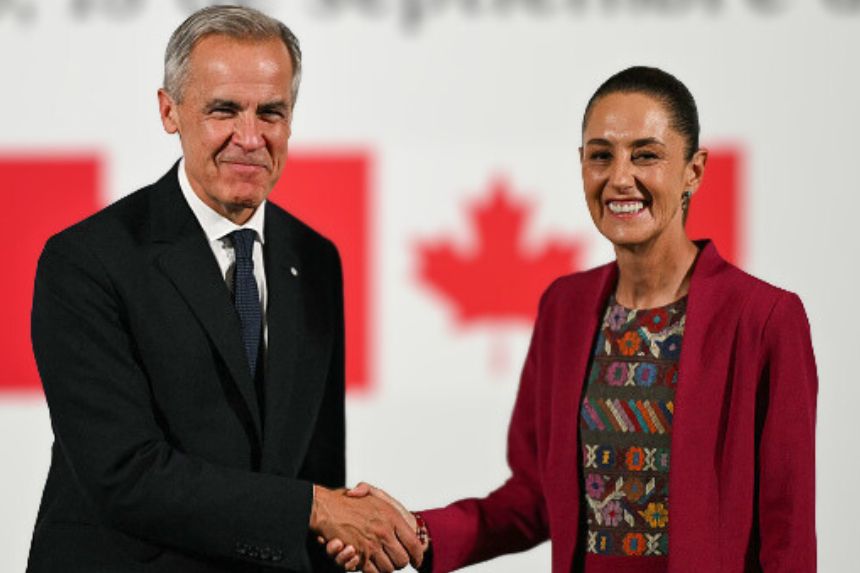 Imagen ilustrativa: El primer ministro de Canadá, Mark Carney (izq.), y la presidenta de México, Claudia Sheinbaum (der.), se dan la mano tras una conferencia de prensa conjunta en el Palacio Nacional de la Ciudad de México, el 18 de septiembre de 2025. (YURI CORTEZ/AFP vía Getty Images)Canadá y México comparten más de 81 años de relaciones diplomáticas y desde hace 21 años mantienen una alianza comercial que sirve como hoja de ruta para identificar prioridades y guiar las acciones estratégicas de la relación bilateral.