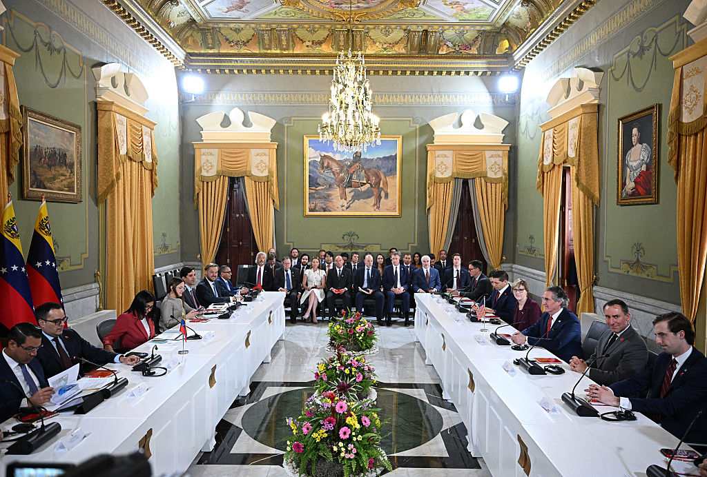 La presidente interina de Venezuela, Delcy Rodríguez, estrecha la mano del secretario del Interior de EE. UU., Doug Burgum, tras su reunión en el Palacio Presidencial de Miraflores, en Caracas, el 4 de marzo de 2026. (Federico PARRA / AFP a través de Getty Images)Desde la detención de Maduro y su esposa Celia Flores en una operación militar estadounidense el 3 de enero en Caracas, Venezuela, Estados Unidos le ha confiado a Rodríguez el proceso de estabilización interna y la garantía de que empresas petroleras accedan a Venezuela para reconstruir la deteriorada industria y aumenten la extracción de petróleo de las ricas reservas del país.
