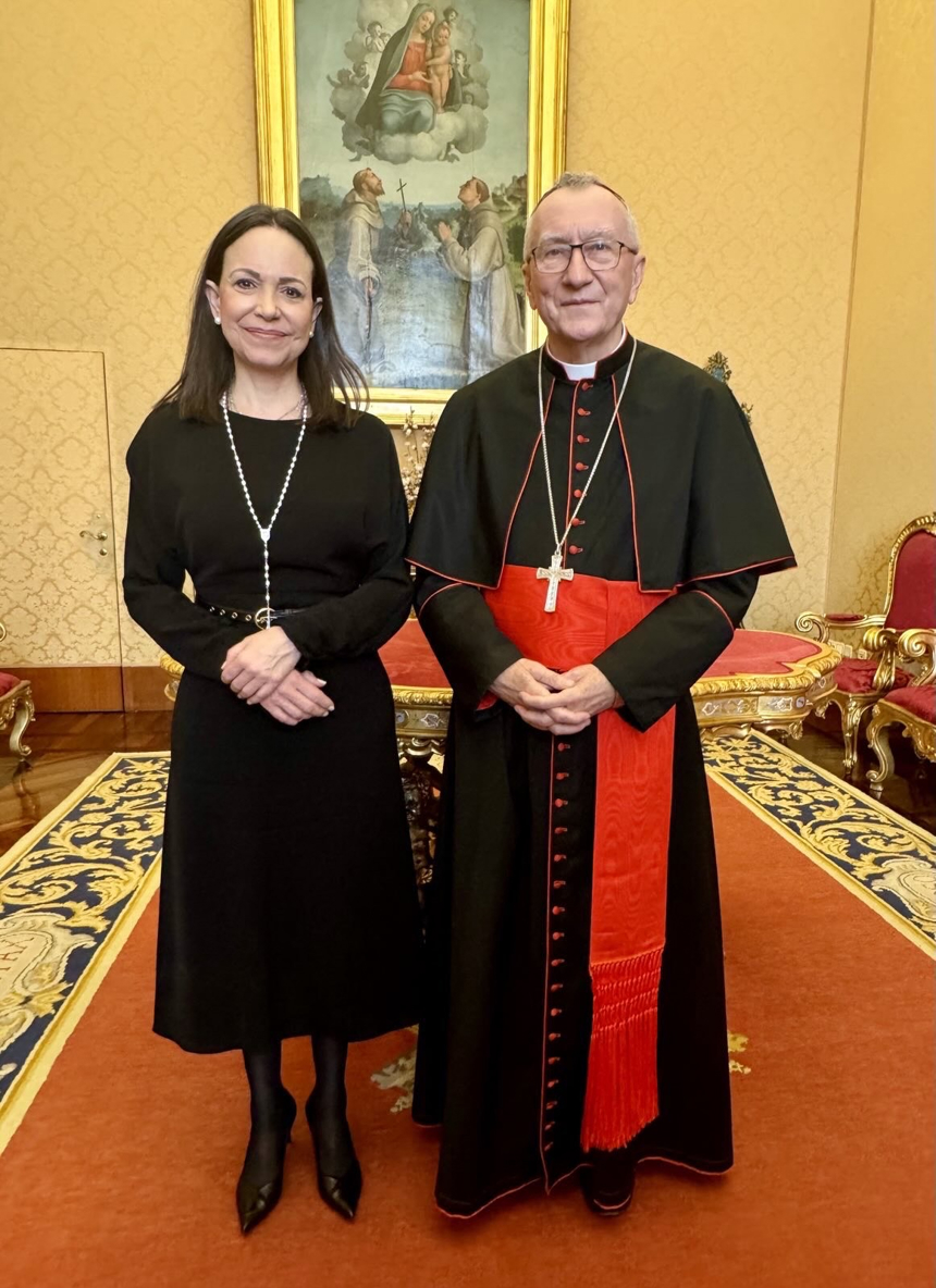 La líder opositora venezolana, María Corina Machado, visita este lunes Ciudad del Vaticano. La líder opositora venezolana, María Corina Machado, ha pedido este lunes al papa León XIV en el Vaticano que interceda por los presos políticos y por el avance de la transición a la democracia en Venezuela. (EFE/Comando De Campaña De María Corina Machado)Luego de su encuentro con el papa, la opositora venezolana también se reunió con el secretario de Estado vaticano, el cardenal Pietro Parolin, que fue representante diplomático del Papa en Venezuela entre 2009 y 2013.