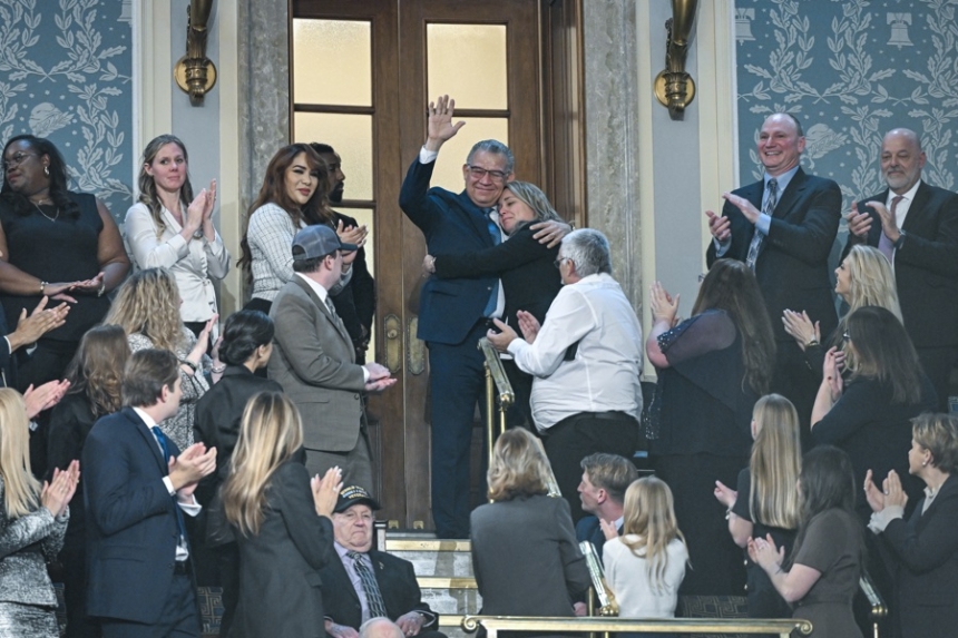 Enrique Márquez (c-arriba), un prisionero venezolano liberado, durante el discurso del Estado de la Unión de presidente de EE.UU., Donald J. Trump. (EFE/EPA/KENNY HOLSTON / POOL)Liberado del Helicoide –prisión de máxima seguridad en Caracas, Venezuela–, tras la captura del líder venezolano Nicolás Maduro, Enrique Márquez, exdiputado opositor y excandidato presidencial venezolano en 2024 fue invitado de honor durante el discurso del Estado de la Unión del presidente de Estados Unidos Donald Trump.