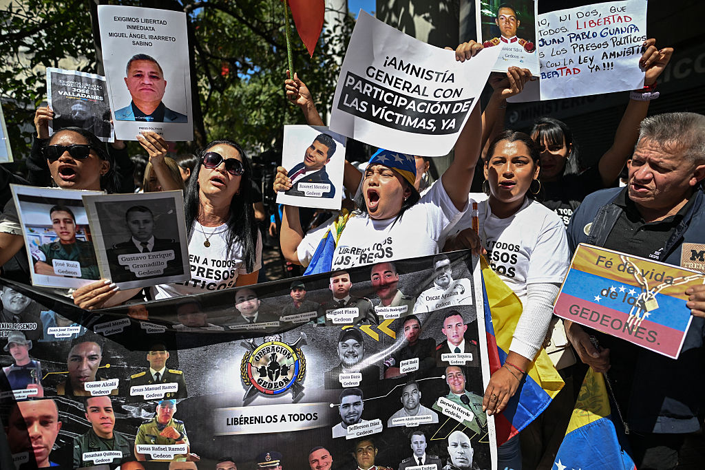 Familiares de presos políticos se manifiestan para exigir su liberación frente al tribunal de Caracas el 5 de febrero de 2026. El Parlamento venezolano debate desde el jueves un proyecto de ley de amnistía que ampara a los acusados de "traición", "terrorismo" e "incitación al odio", delitos que solían imputarse a los presos políticos. (Juan BARRETO / AFP vía Getty Images)El Parlamento venezolano, de amplia mayoría chavista, aprobó el jueves en primera votación el proyecto de ley de amnistía impulsado por la presidenta encargada, que ahora debe ser evaluado en un segundo y último debate.