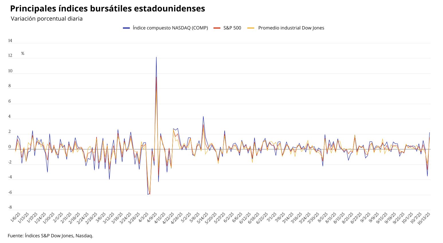 Desde la venta masiva provocada por los aranceles en primavera, el mercado bursátil estadounidense ha experimentado un auge. El índice Dow Jones Industrial Average, el S&P 500, más amplio, y el índice Nasdaq Composite, con gran peso tecnológico, han registrado habitualmente nuevos máximos históricos este año.
