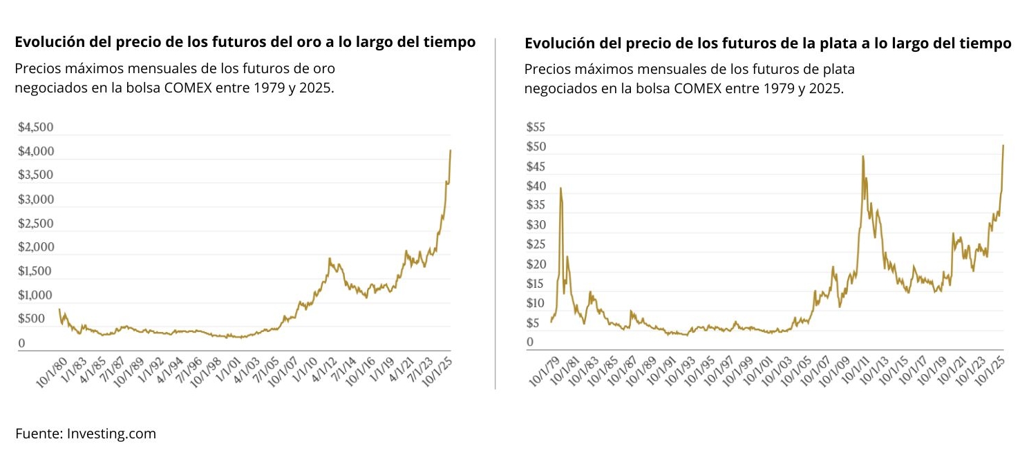 El oro ha brillado con fuerza a lo largo de 2025, superando por primera vez los 4000 dólares por onza. La plata, su materia prima hermana, alcanzó recientemente los 50 dólares por onza, el nivel más alto desde las secuelas de la crisis financiera mundial.
