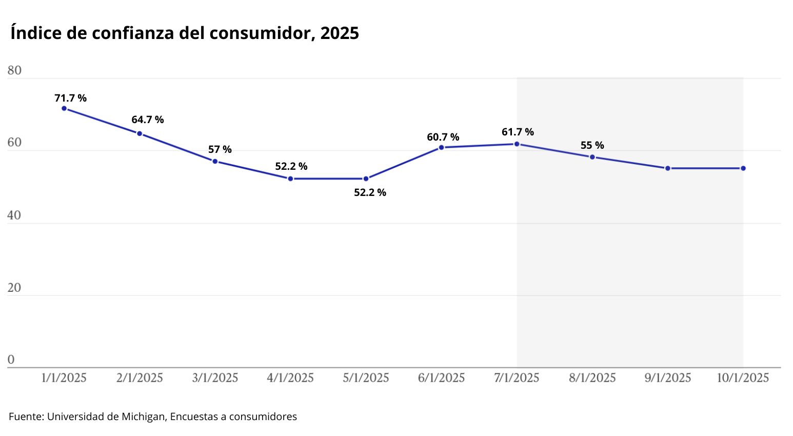 Tras registrar una expansión del 3.8 por ciento en el segundo trimestre, el modelo GDPNow del Banco de la Reserva Federal de Atlanta estima que la economía estadounidense está preparada para otro aumento del 3.8 por ciento.Aunque los consumidores se muestran cautelosos ante el panorama actual —el índice de confianza del consumidor de la Universidad de Michigan se encuentra en su mínimo de cuatro meses—, los datos sugieren que siguen abriendo sus carteras.