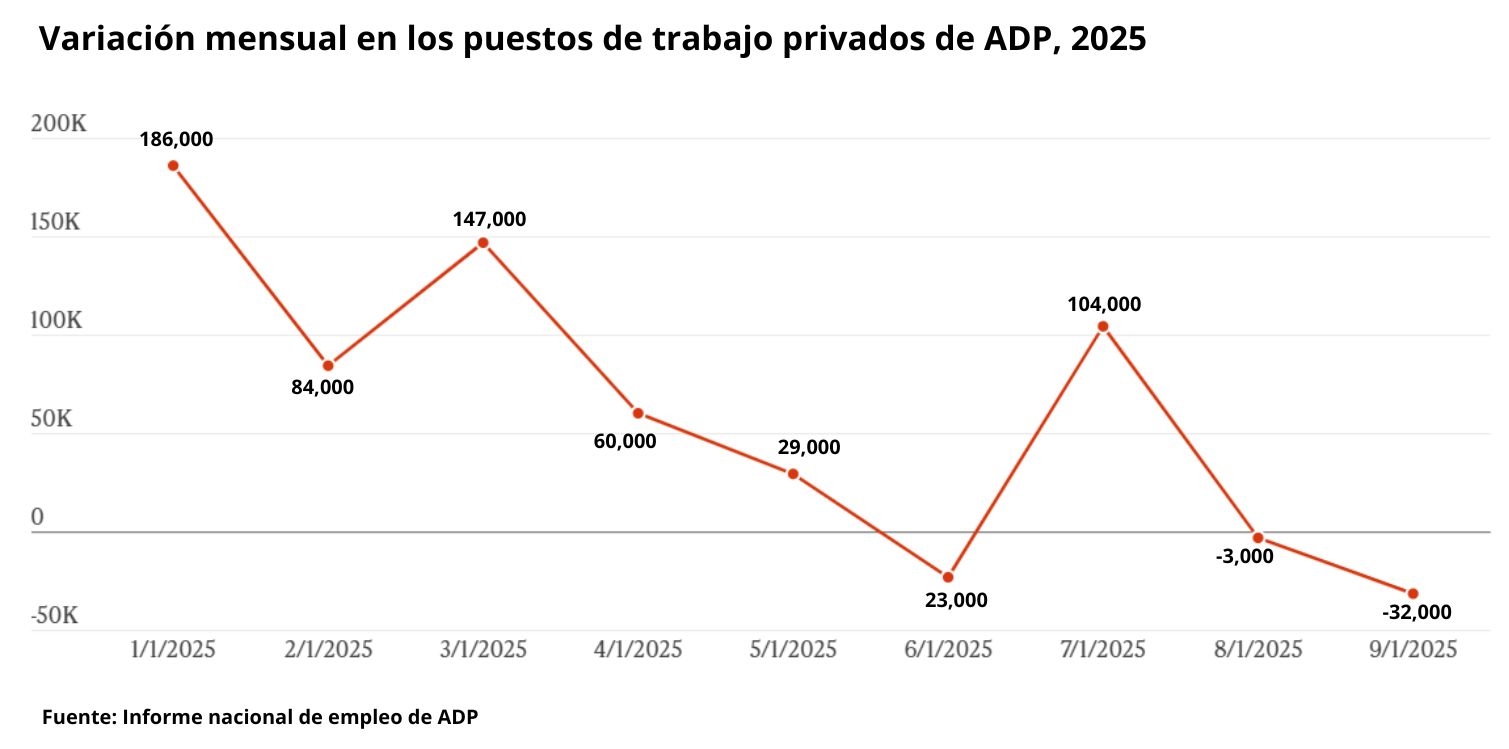 Los responsables de la política monetaria y los inversionistas han estado confiando en alternativas del sector privado. La empresa de gestión de nóminas ADP informó de que las empresas privadas eliminaron 32,000 puestos de trabajo en septiembre.
