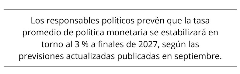 Los responsables políticos prevén que el tipo de interés medio se situará en torno al 3 por ciento a finales de 2027, según el último Resumen de Proyecciones Económicas, publicado en septiembre.
