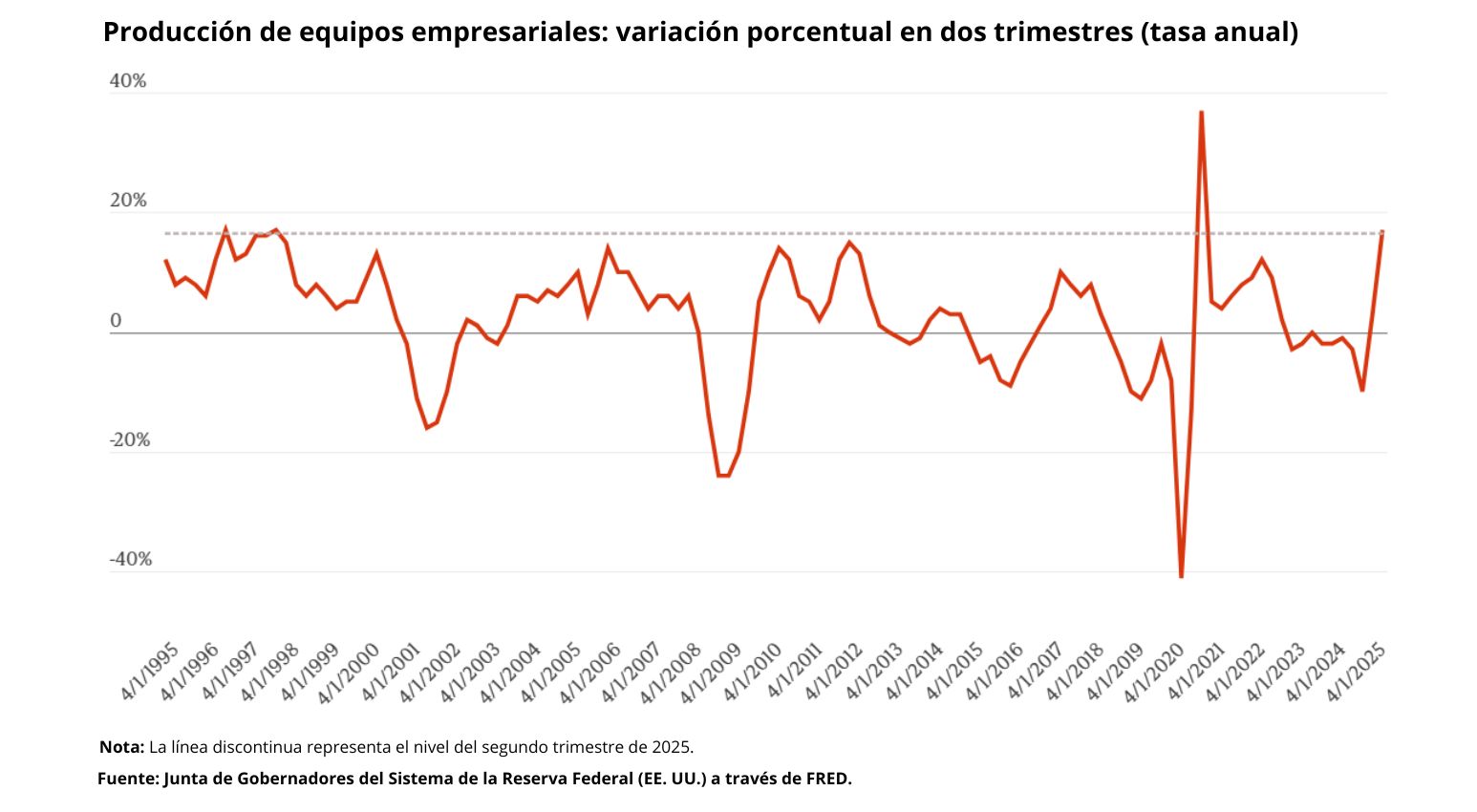 En la primera mitad de 2025, el gasto en CapEx aumentó casi un 17 por ciento. El secretario del Tesoro, Scott Bessent, lo calificó como un "regreso" del CapEx, afirmando que las cifras indican "una importante ola de inversiones en marcha".