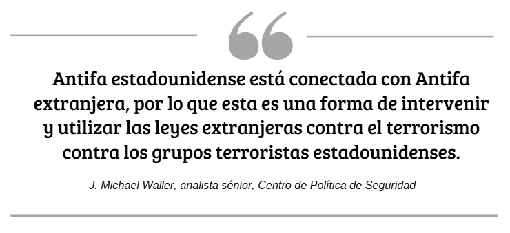 Michael Waller, exagente de la CIA que ahora trabaja como analista sénior en el Centro de Política de Seguridad, dijo que las declaraciones de Trump sobre las FTO han "dinamizado la lucha contra el extremismo violento interno al poner en práctica las estrictas leyes federales existentes"."Estos grupos extranjeros y Antifa nacional se comunican entre sí. Hay distintos grados de colaboración", declaró a The Epoch Times. "La designación como FTO proporciona a las autoridades más herramientas para tomar medidas enérgicas contra los extremistas nacionales de formas que ya se han establecido en la corte".