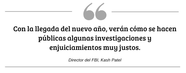 "Con la llegada del nuevo año, verán cómo se hacen públicas algunas investigaciones y enjuiciamientos muy justos", añadió el director.