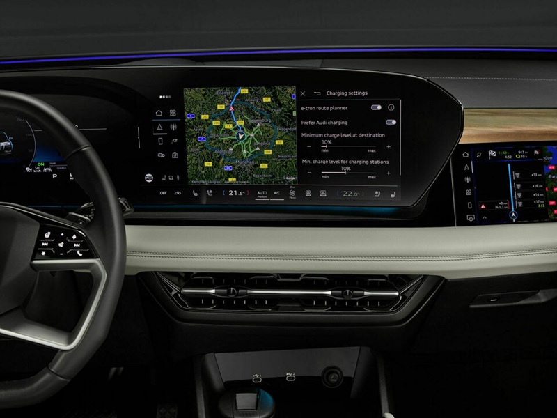 El modelo Quattro con tracción total cae a 377 millas o 607 kilómetros, mientras que el S6 de alto rendimiento y 543 caballos baja a 324 millas o 521 km. Más interesante aún es que el sistema de carga es compatible con cargadores rápidos de 270 kilovatios DC, que pueden llevar la batería del 10% al 80% en solo 21 minutos.