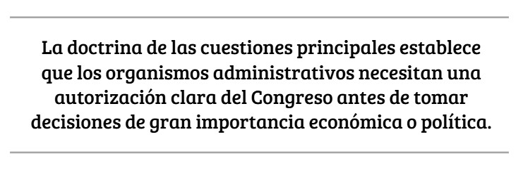 Aunque es difícil predecir cómo fallará la Corte Suprema, los argumentos del caso y las decisiones anteriores de la corte indican una preocupación por la separación de poderes. Bajo la presidencia del juez John Roberts, la corte ha utilizado una prueba conocida como la doctrina de las cuestiones importantes para fallar en contra de las políticas a gran escala del poder ejecutivo.Esa doctrina establece que los organismos administrativos necesitan una autorización clara del Congreso antes de tomar decisiones de gran importancia económica o política. La corte utilizó notablemente la doctrina para anular una de las políticas climáticas del presidente Barack Obama, así como uno de los programas de condonación de préstamos estudiantiles del presidente Joe Biden.