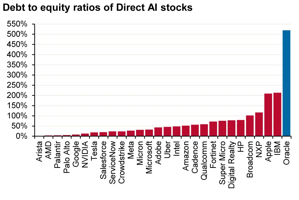 "Las acciones de Oracle subieron un 25 [por ciento] tras prometer 60,000 millones de dólares al año a OpenAI, una cantidad de dinero que OpenAI aún no gana, para proporcionar instalaciones de computación en la nube que Oracle aún no ha construido y que requerirán 4.5 GW de potencia (el equivalente a 2.25 presas Hoover o cuatro centrales nucleares), así como un aumento de los préstamos por parte de Oracle, cuya ratio de deuda sobre capital ya es del 500 [por ciento]", dijo.