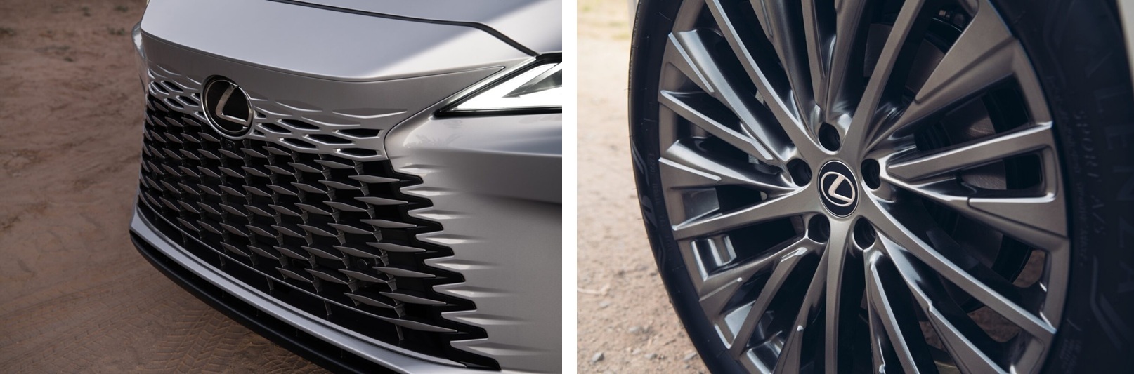 El RX tiene un estilo angular y deportivo, bastante equilibrado y llamativo. Al frente destaca la amplia parrilla en forma de huso, característica de la marca, que aquí me parece más integrada al conjunto, quizá por el efecto visual que provocan las grandes tomas de aire laterales. Creo que ayuda que la parrilla tenga una versión propia, algo más refinada, en este modelo.