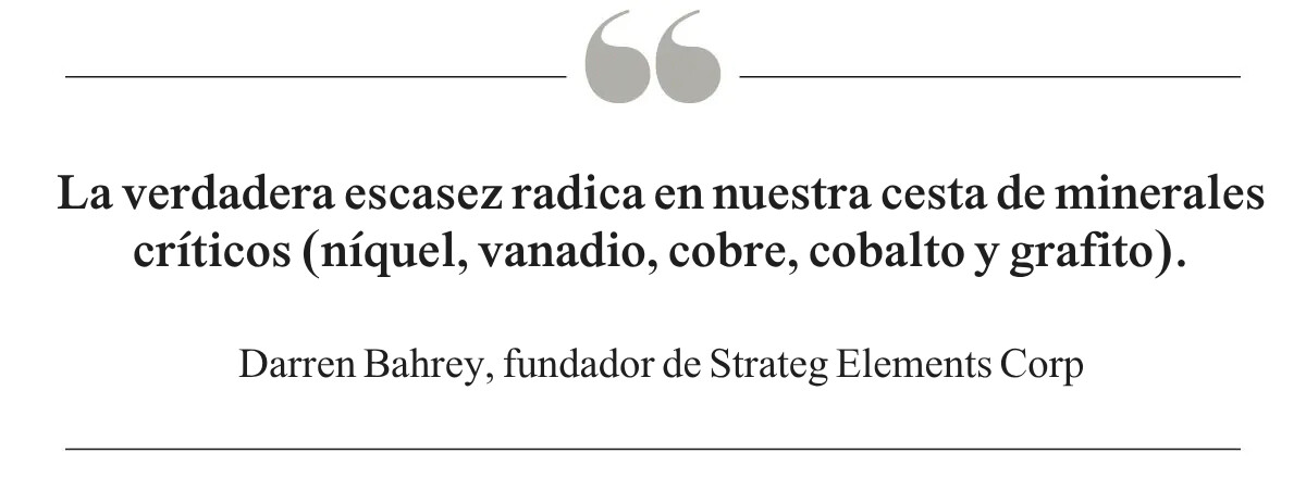 "La verdadera escasez radica en nuestra cesta de minerales críticos (níquel, vanadio, cobre, cobalto y grafito)".