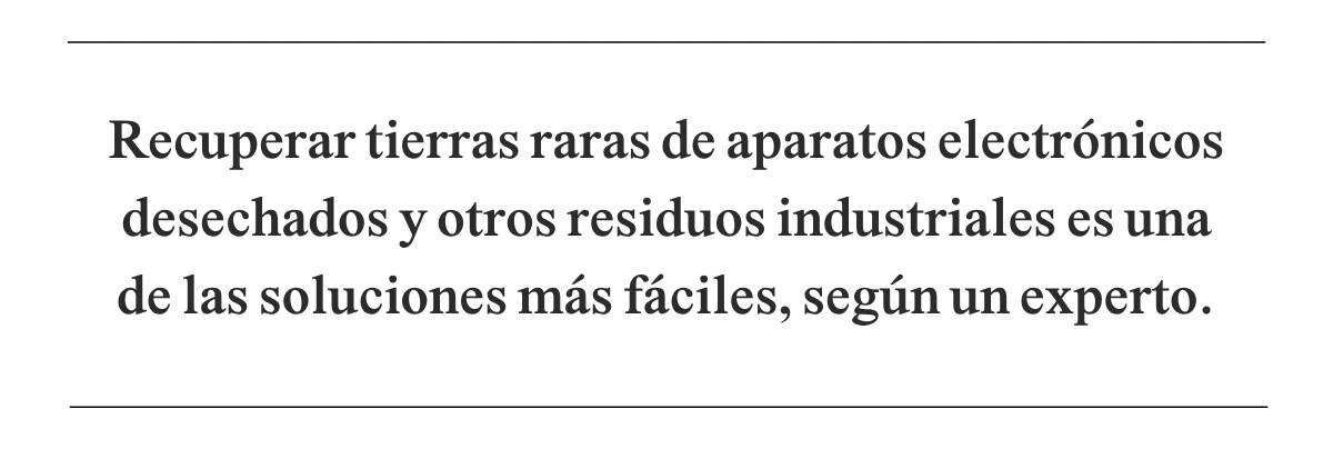 Dijo que recuperar tierras raras de aparatos electrónicos desechados y otros residuos industriales es una de las "tareas más fáciles".