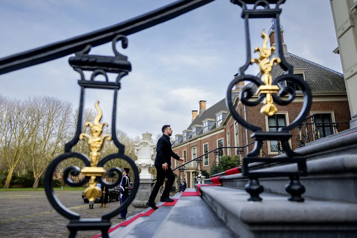 El presidente ucraniano, Volodímir Zelenski, llega a una reunión con el rey de los Países Bajos en el palacio Huis ten Bosch de La Haya, el 16 de diciembre de 2025. (Robin van Lonkhuijsen/ANP/AFP a través de Getty Images)Tras el acuerdo de financiación, el presidente ucraniano, Volodímir Zelenski, que había estado presente en la reunión, agradeció a la UE su continuo apoyo.