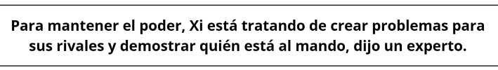 Para mantener el poder, afirmó, Xi está tratando de crear problemas a sus rivales y demostrar quién está al mando.