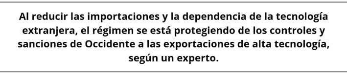 La seguridad económica y tecnológica es la base de la seguridad nacional; al reducir las importaciones y la dependencia de la tecnología extranjera, el régimen se está protegiendo de los controles y sanciones a la exportación de alta tecnología de Occidente, afirmó.