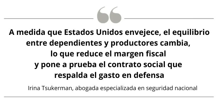 "A medida que Estados Unidos envejece, el equilibrio entre dependientes y productores cambia, lo que reduce el margen fiscal y pone a prueba el contrato social que respalda el gasto en defensa".