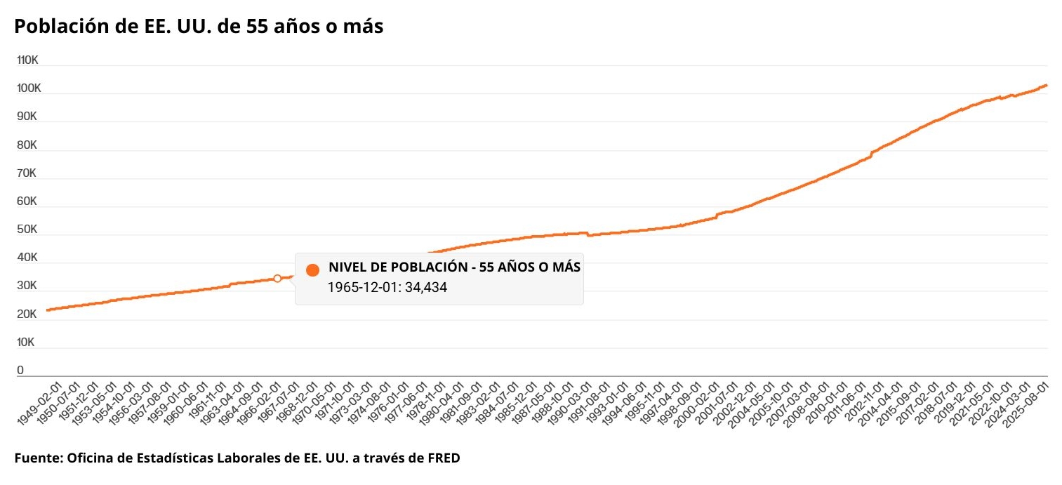 Las cifras varían, pero se estima que el número de adultos estadounidenses mayores de 55 años es de cerca de 103 millones, según el Banco de la Reserva Federal de St. Louis.
