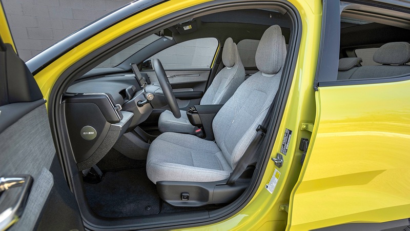 La autonomía estimada con doble motor es de 265 millas o 426 kilómetros, lo que está en línea con otros vehículos eléctricos con una batería inferior a 70 kWh, pero en nuestra prueba el EX30 rindió menos, debido al pesado uso del acelerador que hice para disfrutar de los 422 caballos de potencia en un auto pequeño. La estimación de carga rápida de CC es de unos 27 minutos para llevar la batería de 10 % al 80 %.