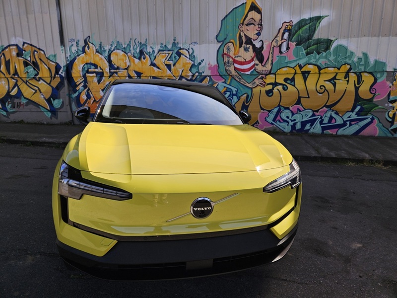 Si pudiera resumir en un solo adjetivo mi impresión del EX30, diría que es “simpático”. Volvo marca el tono de su enfoque minimalista con un frontal sin rejilla, aunque sí presenta una versión en relieve de la característica banda de Volvo, que naturalmente interseca su emblema.