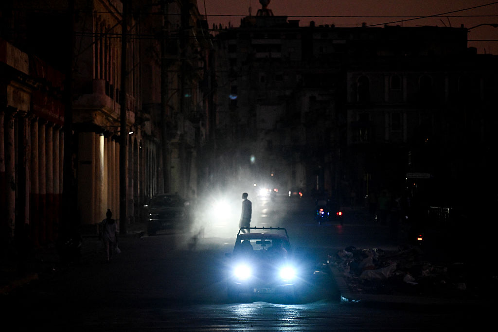 Un hombre camina mientras los autos circulan por una calle durante un apagón en La Habana el 16 de marzo de 2026. Cuba sufrió un corte de energía generalizado el 16 de marzo de 2026, según la compañía eléctrica nacional, en el contexto de una grave crisis en la isla provocada por el bloqueo energético estadounidense. (Foto de Yamil LAGE / AFP vía Getty Images)Esta bravuconería enmascara una realidad mucho más frágil. Los funcionarios se preparan para un nuevo "período especial" que recuerda al colapso postsoviético de la década de 1990.
