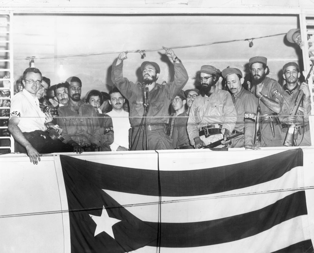 4 de enero de 1959: El presidente cubano Fidel Castro se dirige desde un podio al pueblo de Camagüey, Cuba, para hablar sobre el triunfo de la Revolución Cubana tres días antes contra las fuerzas de Fulgencio Batista. Castro está rodeado por miembros del Movimiento Revolucionario 26 de Julio. (Foto de Hulton Archive/Getty Images)El estado castrista jamás ha sido una pacífica paloma en sus relaciones con Estados Unidos, como pretenden presentarlo sus aliados y voceros. Antes de que Washington ordenara la primera acción contra el castrismo, La Habana, bajo el dominio de los hermanos Castro, organizó cuatro expediciones armadas contra otros tantos países del Caribe, incluida Panamá, de gran relevancia para la Casa Blanca por ser la sede del canal.