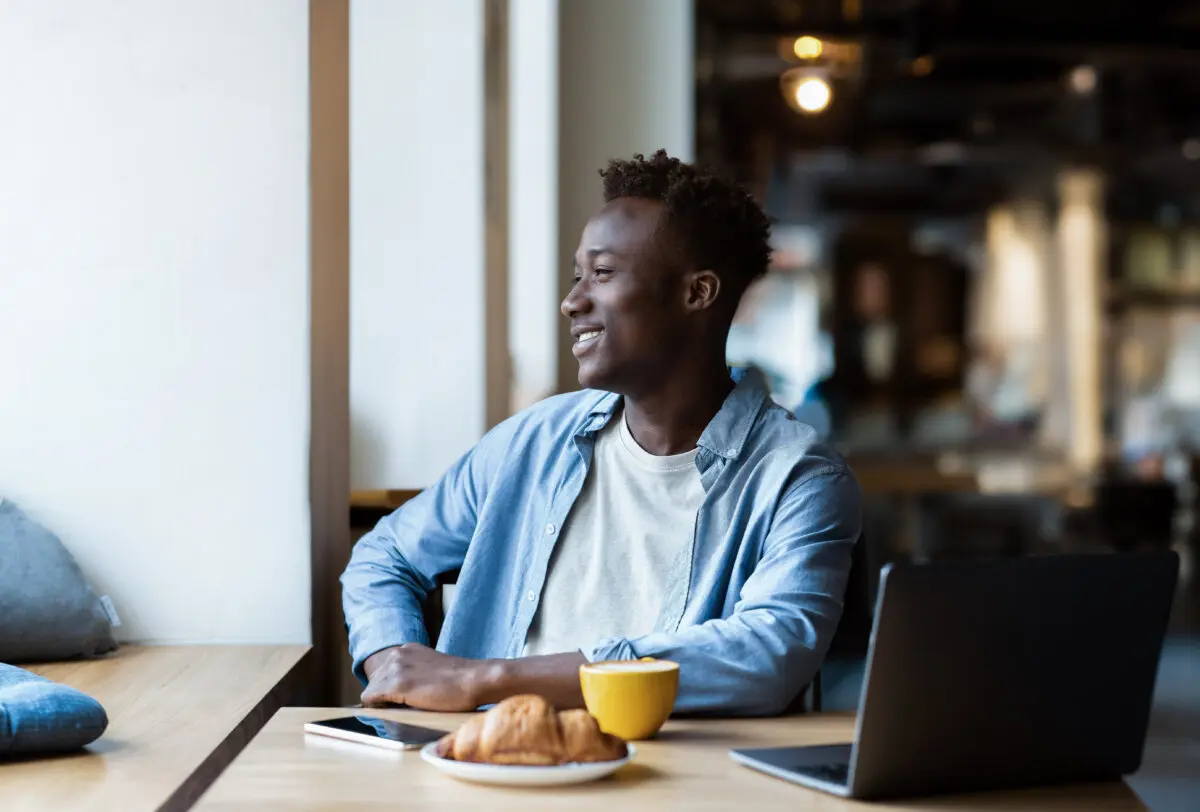 Un joven sentado en una cafetería. (Prostock-studio/Shutterstock)Hace años, cuando tenía un restaurante en Culver City, California, un día lluvioso entró un grupo numeroso. Eran más de doce personas. La mitad del restaurante era terraza, lo que significaba que estábamos completamente llenos en el interior. Todas las mesas estaban ocupadas.