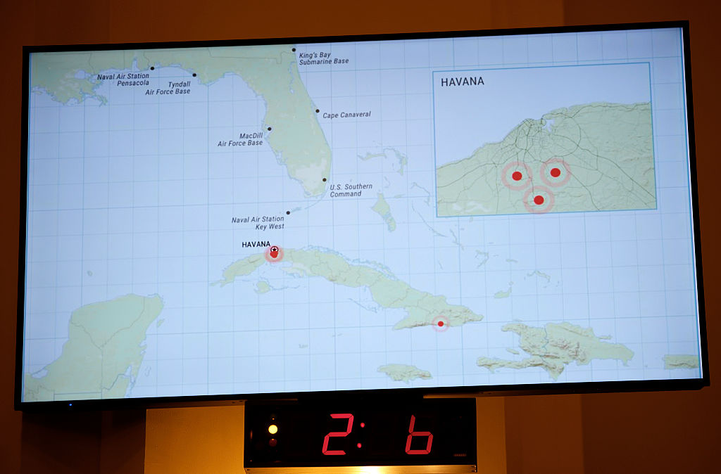 Se exhibe una imagen de un mapa de presuntas instalaciones de inteligencia chinas en Cuba durante una audiencia del Subcomité del Comité de Seguridad Nacional de la Cámara de Representantes en el Edificio Canon de la Cámara de Representantes el 6 de mayo de 2025 en Washington, D.C. El Subcomité de Seguridad Nacional sobre Transporte y Seguridad Marítima celebró una audiencia para investigar la presunta vigilancia china a Estados Unidos desde Cuba. (Foto de Kevin Dietsch/Getty Images)5. Infraestructura y rutas: la retaguardia estratégica